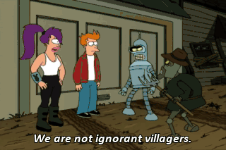 We are not ignorant villagers. We're sophisticated New New Yorkers. Whup his butt! Stop! What are ye doing? We're whaling on the original were-car which is you, you jerk. Ye think me be he? Si! Nee. I mean, no.