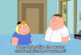 Does it feel like the water suddenly just got warmer? No. Oh, that's right. It's pee that makes it warmer.