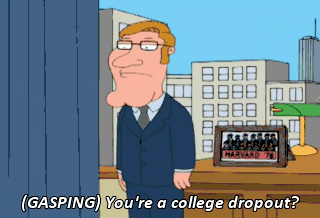 (GASPING) You're a college dropout? Brian, The New Yorker does not employ your kind. You, sir, are fired!