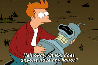 He's okay. Quick, does anyone have any liquor? Bender, what happened?