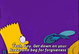 Yeah, boy. Get down on your knees and beg for forgiveness ! Yeah, beg me, Bart. Beg me ! Lisa, I beg of you. Please forgive me ! Now we can blame him for everything ! It's your fault I'm bald !
