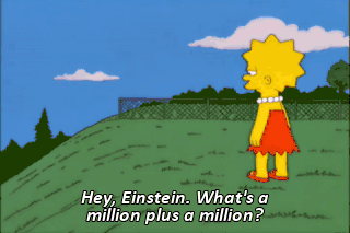 Hey, Einstein. What's a million plus a million? Two million. So?