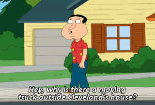 Hey, why is there a moving truck outside Cleveland's house?