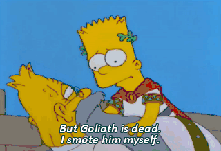 But Goliath is dead. I smote him myself. I "smoted" him good. No, it was his son, Goliath ii. NO-O-o! Goliath II is gonna pay.