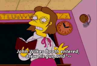 John Wilkes Booth entered, drew his gun and"-- Well, that's it. Have a nice summer, everyone. But what happened in Ford's Theatre? Was President Lincoln okay? He was fine. Go home, Ralph.