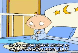 So the man in white is coming to put me back in the womb, is he?
