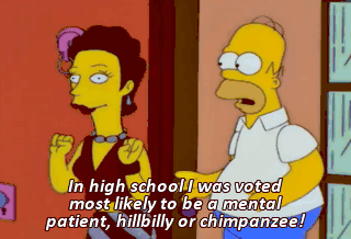 In high school I was voted most likely to be a mental patient, hillbilly or chimpanzee!