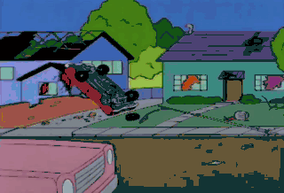 Piece of cake. All we have to do is follow the path of destruction. Oh, stupid tornado! Look. It got Patty and Selma.