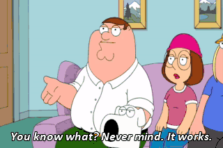 You know what? Never mind. It works. Good Lord. Am I a porn baby? Oh, I'm sure not. They don't usually finish inside. Your mom's in a porno! I saw her boobs! Shut up! Hey, Griffin, your mom's a whore!