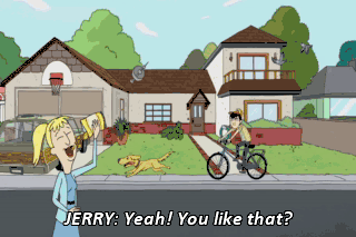 JERRY: Yeah! You like that? Now who's unremarkable? You hungry for apples? Are you hungry...for...apples?!