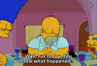 Well, not today. You saw what happened ! Oh, Lord, be honest ! Are we the most pathetic family in the universe or what ? Amen. Worst prayer yet. Doh ! Mmm, why don't I go talk to the children ?