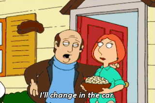 I'll change in the car. If I had a nickel for every time one of my parents walked out on me instead of teaching me how to drive, I'd be one rich little-- Let's go, Meg.
