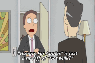 "Hungry For Apples" is just a rip-off of "Got Milk?" It's almost identical. Yes. Okay. I deserve that. Umm...| guess-, I'll just pack up my desk. Yes. Oh, my Gad,