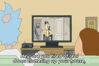 Hey, are you tired of real doors cluttering up your house, where you open them and you actually go somewhere, and you go into another room F Get on down to Real Fake Doors. That's us.