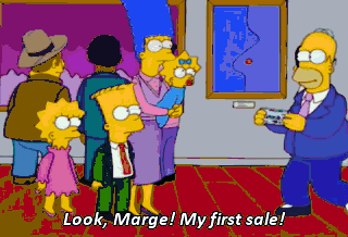 Look, Marge! My first sale! In your face, jasper johns! Huh? Where you going with that junk, Dad? I'm gonna be an outsider artist.