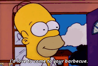 I'd love to come to your barbecue. I'll even bring the thickest, juiciest T-bones you've ever seen. Mmm, mmm, sounds terrif ! The joke's on him. I'll be dead by then.