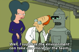 Well, I suppose the environment can take one more for the team. What a fool I was! If only I had made the effort to develop a cleaner-burning robot. But I was tired and in love. Take me now, you stud!