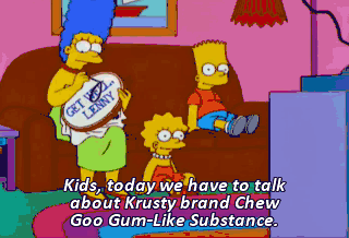 Kids, today we have to talk about Krusty brand Chew Goo Gum-Like Substance.