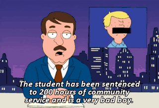 The student has been sentenced to 200 hours of community service and is a very bad boy.
