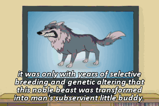 it was only with years of selective breeding and genetic altering that this noble beast was transformed into man's subservient little buddy.