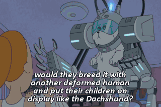 would they breed it with another deformed human and put their children on display like the Dachshund?