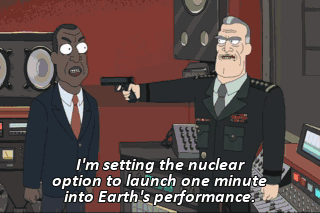 I'm setting the nuclear option to launch one minute into Earth's performance.
