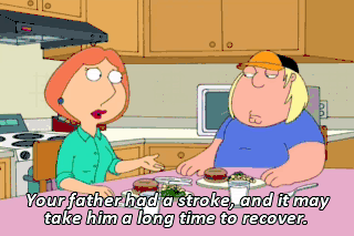 Your father had a stroke, and it may take him a long time to recover. PETER: Lois! Bring me another beer, please! (SIGHS) Uh... Lois. You mind telling me what the hell you think you're doing? I'm handing you a beer.