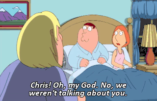 Chris! Oh, my God. No, we weren't talking about you. Yeah, we were talking about Meg. We call her Chris so she doesn't know. MEG: Fuck you! Shut up, Chris! I know that's not true. (SOBBING) Oh, God.