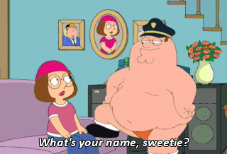 What's your name, sweetie? Dad, you know my name. (EXCLAIMS) It's Officer Nasty. Careful, I might be carrying a concealed weapon.