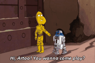 Hi, Artoo! You wanna come play? CLEVELAND: Sure!