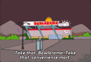 Take that, Bowlarama. Take that, convenience mart. Take that, nuclear power pl-- Oh, fiddlesticks. I must say Mr. Burns is being awfully inconsiderate. Selfish, even.