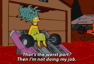 That's the worst part? Then I'm not doing my job. (LAUGHING DIABOLICALLY) (MARGE SCREAMS) I've gotta save them!
