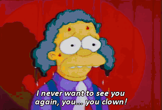 I never want to see you again, you... you clown! I haven't seen my father since. That is so sad.