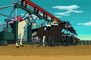 Come on, number six! Move it! Don't do that! What are you-- Man, it's contagious. And the winner is Harry Trotter... by the entire racetrack!