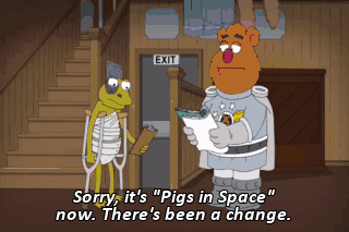 Sorry, it's "Pigs in Space" now. There's been a change.