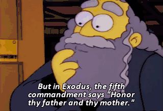 But in Exodus, the fifth commandment says "Honor thy father and thy mother." End of story. Oh, it's hopeless. Not quite. I got some dynamite stuff from Rabbi Simon Ben-Eliazar.