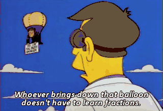 Whoever brings down that balloon doesn't have to learn fractions. Uh, careful, children. That's my car.