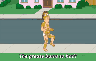 The grease burns so bad! I can't hear! Boy, I am late for that meeting.