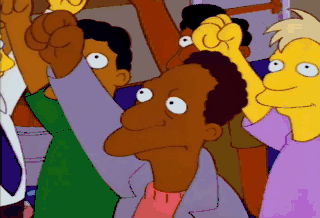 Homer! Homer! Homer! I move that Homer Simpson be our new union president. All in favor? Aye! All opposed? Nay. Congratulations, Homer.