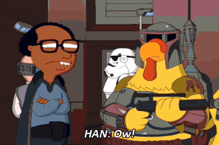 HAN: Ow! Ow! Ow! Ow! Ow! Ow! Ow! Ow! Ow! This facility should be adequate to freeze Skywalker for his trip to the Emperor. We'll test it on Captain Solo.