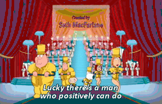 Lucky there's a man who positively can do All the things that make us Laugh and cry He's a family guy Hey, Brian, have you seen the remote?