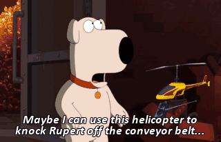 Maybe I can use this helicopter to knock Rupert off the conveyor belt...