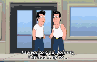 I swear to God, Johnny, I've had it up to... ...here with your BS. Oh, he's really had it this time. I'm sorry, Louie! All right, then.
