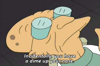 Incidentally, you have a dime up your nose. I wish. It's a nickel.