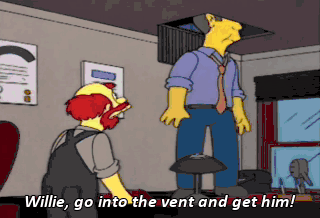 Willie, go into the vent and get him! What? Have you gone waxy in your "beester"? I cannot fit in the wee vent, ya Croquet-playin' mint muncher!