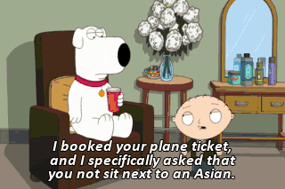 I booked your plane ticket, and I specifically asked that you not sit next to an Asian.