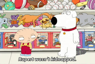 Rupert wasn't kidnapped. I accidentally sold him at the yard sale. You son of a bitch! (WAILING) Come on, Stewie, I'm really sorry. It was an accident. Damn you, Brian. How could you sell Rupert?