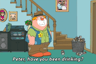 Peter, have you been drinking? Well, a little. It is a party. Take off that stupid costume. You look like a damn fool.