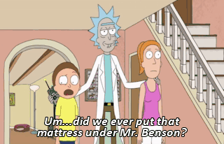 Um...did we ever put that mattress under Mr. Benson? Shhh. Shush, Morty.