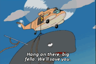 Hang on there, big fella. We'll save you. This ain't personal. I just love to scrimshaw. (SCREAMS) Judgment Day is at hand.